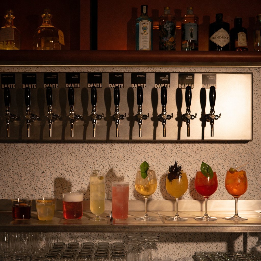 Aperitivo is an integral part of the DANTE experience, featuring classic cocktails such as Spritz, Negroni, and Paloma, alongside modern, creative interpretations including St Germain Spritz, Apples, Miso Margarita, and Mandarin Garibaldi.